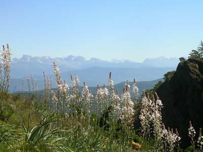 Une belle vue sur la vallée de l'Aragon Arrivée par un beau sentier au-dessus du village d'Arrès