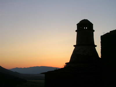 Au coucher de soleil, cette cheminée aragonaise, telle une sentinelle...