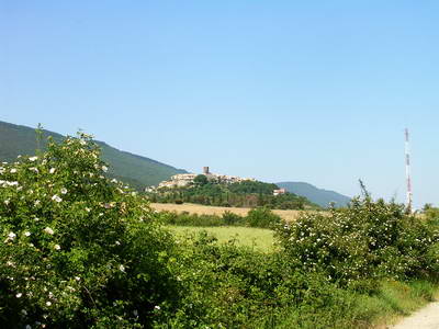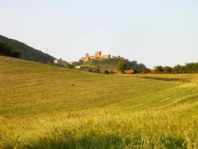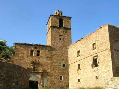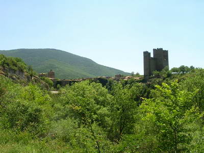 village abandonné dominé par les 2 tours du château et le clocher de l'église