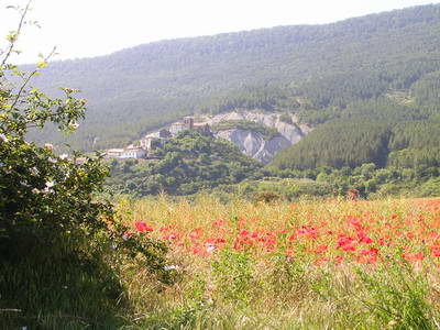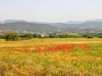 Mianos, l'un des villages situé à flanc de colline... Encore des coquelicots ! On en prend plein les yeux !