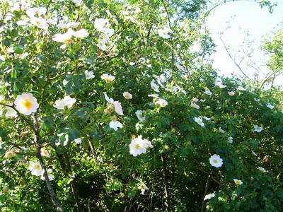 Puis je retrouve de beaux chemins bordés d'églantiers et de chèvrefeuille