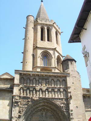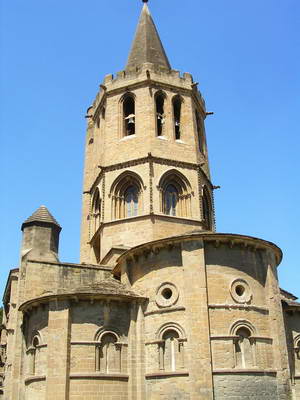 L'église de Santa-Maria la Real, le joyau de Sangüesa, avec sa tour coiffée d'une flèche aérienne du 13ème.