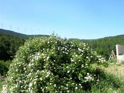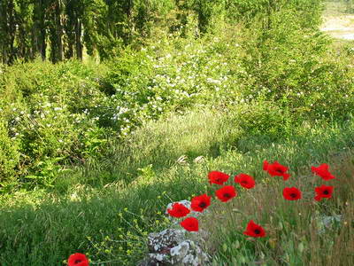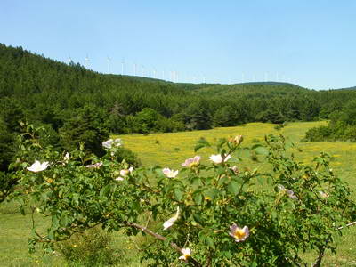 Eglantiers, coquelicots et les éoliennes que l'on entend vrombir...