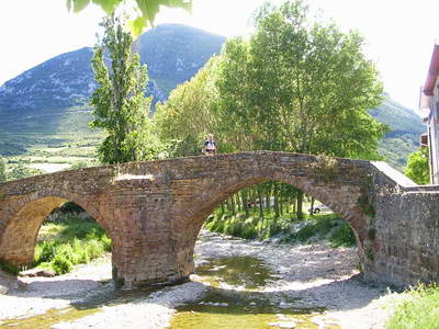 Eglise d'Albinzano L'arrivée à Monreal par le "Pont des Pèlerins" (Gothique à 2 arches)