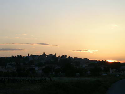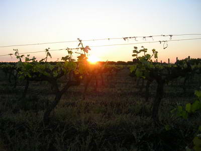 Entre Arles et Saint-Gilles, Après Saint-Gilles, lever de soleil sur les vigne
