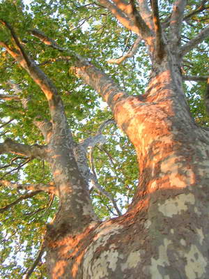 Départ de Gallargues (suite) Un peu plus loin, de beaux platanes dans la lumière du matin