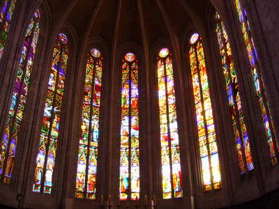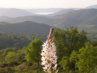 Les vitraux de la cathédrale Saint-Fulcran à Lodève Après Lodève, vue sur la vallée et le lac du Salagou