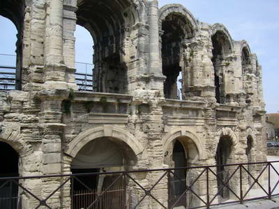 Arles : L'allée des Alyscamps jalonnée de sarcophages grecs Arènes édifiées en 46 av. J.-C.