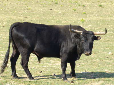 Beau spécimen de taureau camarguais Le lever du jour au départ de Gallargues