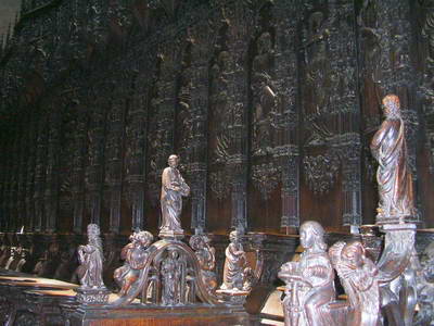 Les stalles sculptées du chœur totalisant La nef centrale de la cathédrale Sainte-Marie à Auch
