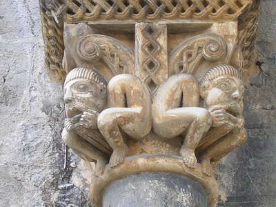 Oloron Sainte-Marie : La cathédrale Sainte-Marie Les "hommes de l'ancienne loi" supportent le trumeau central