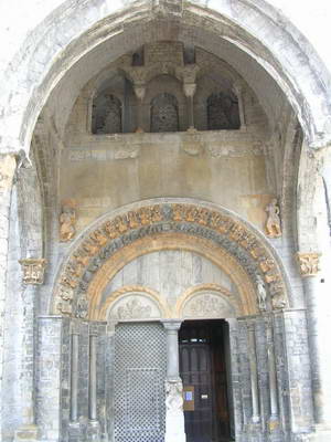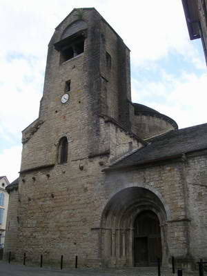 Le portail roman (Voir détail ci-dessus) Derrière le chœur de l'église Sainte-Croix à Oloron