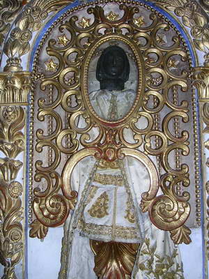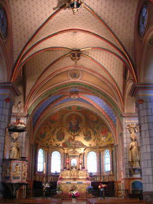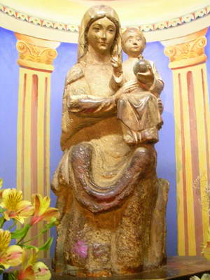 Eglise de Sarrance : La nef et le chœur Une Vierge à l'enfant polie et patinée par les ans...