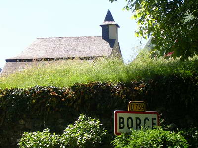 L'église de Borce (17ème) qui contient un bénitier médiéval "Maison forte" du 13ème