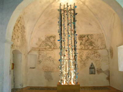 Tableau relatant la légende de "La Vierge Noire"(ci-dessus à droite),