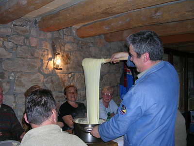 Le soir au gîte "La ferme du Barry" à Aumont-Aubrac, on déguste l'Aligot, spécialité du pays. |