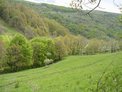 La transition du paysage se fait petit à petit dans la descente jusqu'à Saint-Chély d'Aubrac |