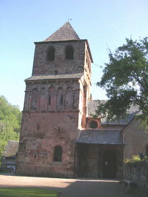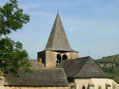 Eglise de Bessuéjols avec une chapelle au 1er étage au sein de son vieux clocher du 11 ème siècle |