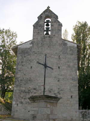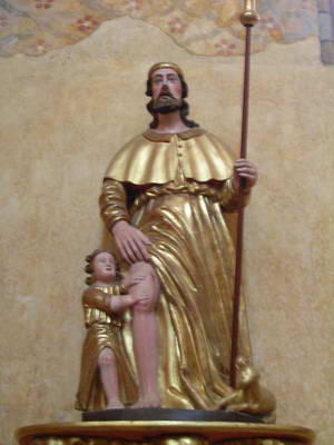 La chapelle Saint-Sernin encadrée de peupliers Statue de Saint-Roch