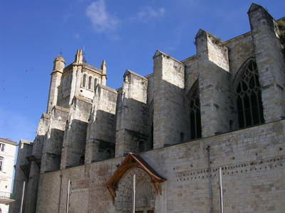 La cathédrale avec son clocher quadrangulaire domine Condom (Bâtie