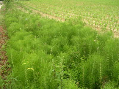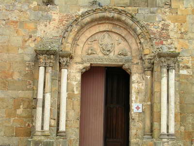 Le long du champ de maïs, une belle bordure de prêle Eglise de Nogaro : Beau portail avec Christ en majesté