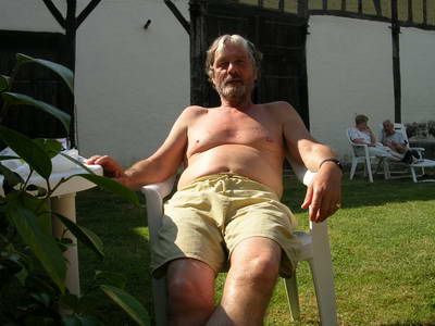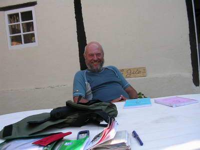 Ernst pèlerin autrichien Repos au gîte de Lanne-Soubiran Erika, pèlerine autrichienne