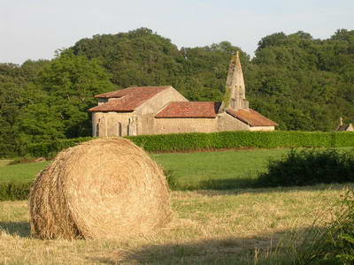 On se fait un bon dîner, bien arrosé, et pour la digestion, nous faisons une petite marche vespérale jusqu'à la petite église de Sensacq, église romane du 11ème siècle, avec une charpente en carène de bateau.