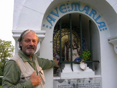 Départ ce matin à 6h, Erika m'a remis 2 compeed sur mes ampoules, et dès les premiers pas, je sens que cela va aller mieux ! On fait un détour pour visiter le sanctuaire de Notre-Dame de Muret situé sur une prairie en promontoire qui domine le gave. C'est un oratoire de 1936, néo-byzantin, qui tire son origine d'un sanctuaire beaucoup plus ancien, bâti sur le chemin de Saint-Jacques au 11ème siècle.