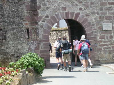 Il commence à faire assez chaud, le relief est assez valloné. Le chemin passe sur des crêtes magnifiques au-dessus du Méritein, puis c'est une longue descente forestière qui conduit à la vallée du Gave d'Oloron, et on arrive à Navarrenx, ancienne bastide fortifiée au 16ème siècle, ceinturée de remparts. Le gîte d'étape Charbel nous accueille enfin... Je me repose à l'ombre sous un grand figuier et le dîner au gîte avec un groupe de français venant de Normandie me procure bien du plaisir.