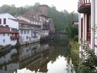 Je fais une première pause dans l'église de Castelnau-Camblong. Le chemin est agréable, tantôt au creux des vallons, tantôt sur les crêtes. Je m'arrête à une aire de pique-nique où je suis rejoint par Erika et Ernst. Un peu plus loin, nous arrivons au bord de la rivière "Le Saison" qui marque la frontière entre le Béarn et le Pays Basque.