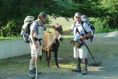 En haut du clocher-mur, un petit toit à quatre pentes Avec Ernst et un compagnon rencontré sur le chemin...