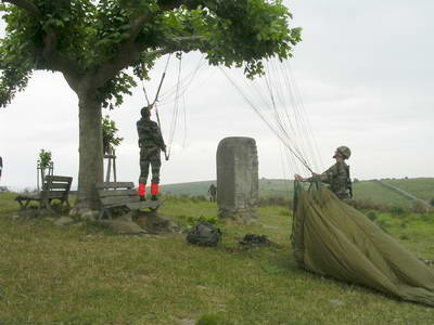 Willie, Erika, Samuel et Ernst devant la stèle de Gibraltar Exercice de parachutiste :