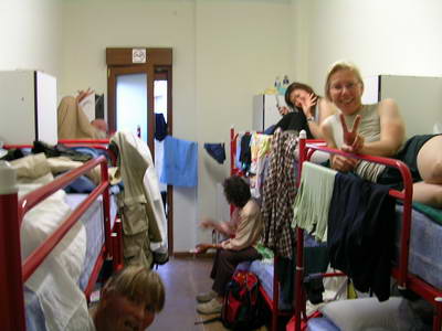 38ème étape : Roncesvalles > Zubiri (18 Juin 2005) Les 2 jeunes pèlerines (Hollandaise et Finlandaise) Dans l'auberge on est un peu à l'étroit..