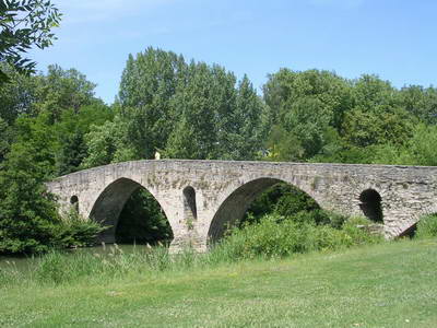 "Le Puente de la Magdalena" sur le rio Arga à l'entrée de Pamplona avec un peu plus loin les remparts....