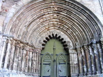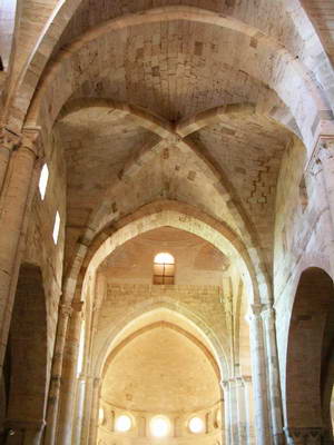 Au petit matin, le beau portail polylobé La nef de l'église du monastère d'Irache