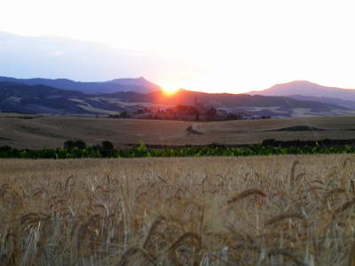 Lever de soleil sur cette belle campagne de la Rioja 2 australiennes rencontrées au gîte de Casa Mari