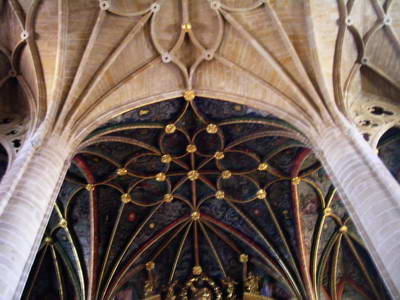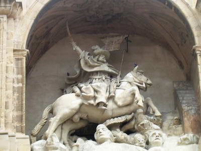 "Santiago el Matamoro" sur la façade de l'église Santiago el Real Le beau portail gothique de l'église san Bartolomé