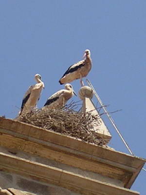 Les cigognes nichent sur les tours des églises Sati la japonaise se rafraîchit les pieds