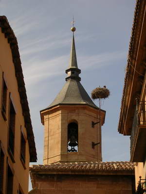 Le chemin est assez facile et l'étape plus courte. La piste est large et droite avec de légères montées au milieu des vignes et des céréales. Je fais juste une pause à Azofra et j'arrive au Refuge de l'Abbaye Cistercienne Nostra Señora de la Anunciacion à Santo Domingo de la Calzada un peu avant midi. J'assiste ensuite à la messe à la cathédrale dont la célébrité provient de la présence d'un coq et d'une poule vivants, qui se trouvent derrière une grille ouvragée qui empêche les pèlerins d'aujourd'hui d'arracher aux pauvres bêtes une plume en guise de relique. (Légende du pendu dépendu qui explique la présence d'un poulailler dans la cathédrale !)