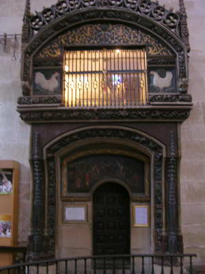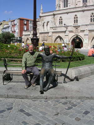 J'ai décidé de rester une journée à Burgos pour profiter au mieux de cette belle ville. Je visite avec Christophe 2 belles églises toutes proches de la Cathédrale : San Nicolas Gothique du 15ème siècle et San Esteban dans laquelle on peut admirer une douzaine de très beaux rétables. On ne peut s'empêcher de retourner à la Cathédrale. Ce chef-d'oeuvre de l'art gothique domine les vieux quartiers de ses hautes tours. Sa construction commença en 1211 pour s'achever au 15ème siècle. On peut y admirer : La statue du Santo Christo, la chapelle Santiago où trône une statue équestre de Saint-Jacques, les portails et les chapelles de Santa Ana et Santa Tecla, l'escalier doré et au centre de la nef le tombeau du Cid et de Chimène.
