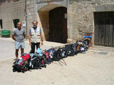 Nous arrivons au Refuge du Monastère vers 14h, et en attendant son ouverture, nous déposons nos sacs en ligne dans notre ordre d'arrivée. On va déjeuner dans l'après-midi avec un 4ème compagnon, Olivier venu du Mans (Voir photo). Un peu plus tard, nous aurons droit à la traditionnelle soupe à l'ail offerte par notre hôtesse.