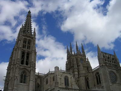 Je fais une partie de l'étape seul, avant de retrouver Christophe et Marie-Anick un peu avant Castañares. On décide de prendre un bus pour éviter les 8 km de zone industrielle qui précède Burgos et ainsi arriver plus tôt dans la cité du Cid où il y a tant de merveilles à voir... Finalement, on prend un taxi et nous voilà au coeur de la ville. C'est jour de fête ! Il y a beaucoup de monde, des orchestres qui sillonnent les rues, des petites baraques où l'on peut manger des tapas et boire quelques bons verres...enfin une super ambiance ! Marie-Anick décide de se rendre à l'auberge des pèlerins, quant à nous avec Christophe, on trouve une petite pension dans la Calle Puebla. Après une pause bien méritée pour déguster tapas et vin de la Rioja, on visite la Cathédrale Santa-Maria qui est l'une des plus belles d'Europe, puis le cloître et le musée. On en prend plein les yeux et plein le coeur de toutes les merveilles qu'on peut y admirer !