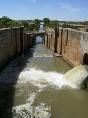 A l'entrée de Fromista, on franchit le canal par une passerelle au-dessus |