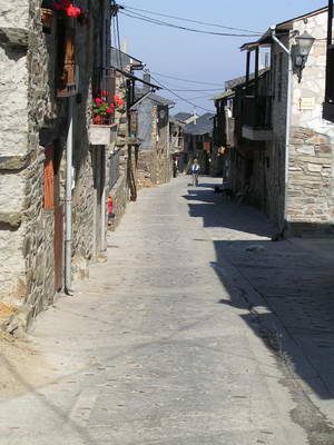 La rue centrale du vieux village El Acebo (1150 mètres) |