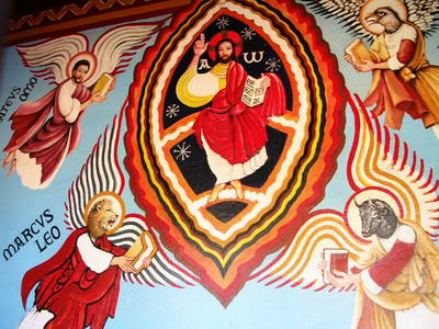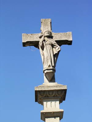 Originalité de ce calvaire avec Saint-Jacques en pèlerin |