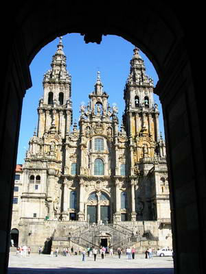 Je vais déjeuner avec 2 françaises, dont l'une est bretonne et a commencé son pèlerinage à la Pointe du Raz (Plus de 2000 km). J'ai du temps devant moi, je flâne dans la vieille ville de Santiago, j'achète quelques souvenirs, je reste un moment à une terrasse de café, puis je vais m'asseoir en face de la Cathédrale pour prendre le temps de relire ces semaines passées où jour après jour, le Camino m'a conduit dans ce haut-lieu spirituel qui a été le but pour des millions de personnes avant moi. Je m'inscris dans cette lignée de tous ces pèlerins qui depuis plus de 1000 ans ont désiré s'asseoir là où je suis maintenant, après avoir déposé leur fardeau et remercié Saint-Jacques de les avoir protégé. Je ressens comme une onde puissante d'Amour qui me submerge.... Je me sens relié à tous ces hommes et ces femmes qui, comme moi, étaient en quête et ont ouvert leur coeur au feu de l'Esprit-Saint pour être purifiés et renouvelés dans leurs vies. C'est un moment intense de communion....Je termine la soirée seul. J'ai hâte de reprendre le Chemin demain pour continuer jusqu'à Finisterre.