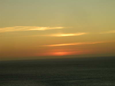 C'est maintenant devant le soleil qui s'enfonce doucement dans l'océan un bon temps de méditation et de contemplation. Je reste un moment perdu dans cette rêverie, tout empli de la beauté de cet océan qui n'en finit pas d'engloutir le disque du soleil qui disparaît peu à peu ...