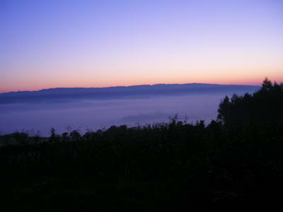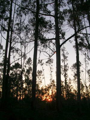 En quittant Negreira cette belle aube me ravit... ... et le soleil de lève derrrière la forêt d'eucalyptus |