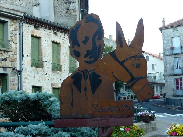 Au cœur du bourg de Pradelles trônent Setevenson et Modestine...