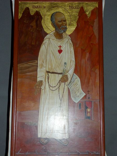 Dans la petite chapelle il y de beaux vitraux et le Père Charles de Foucauld est bien présent